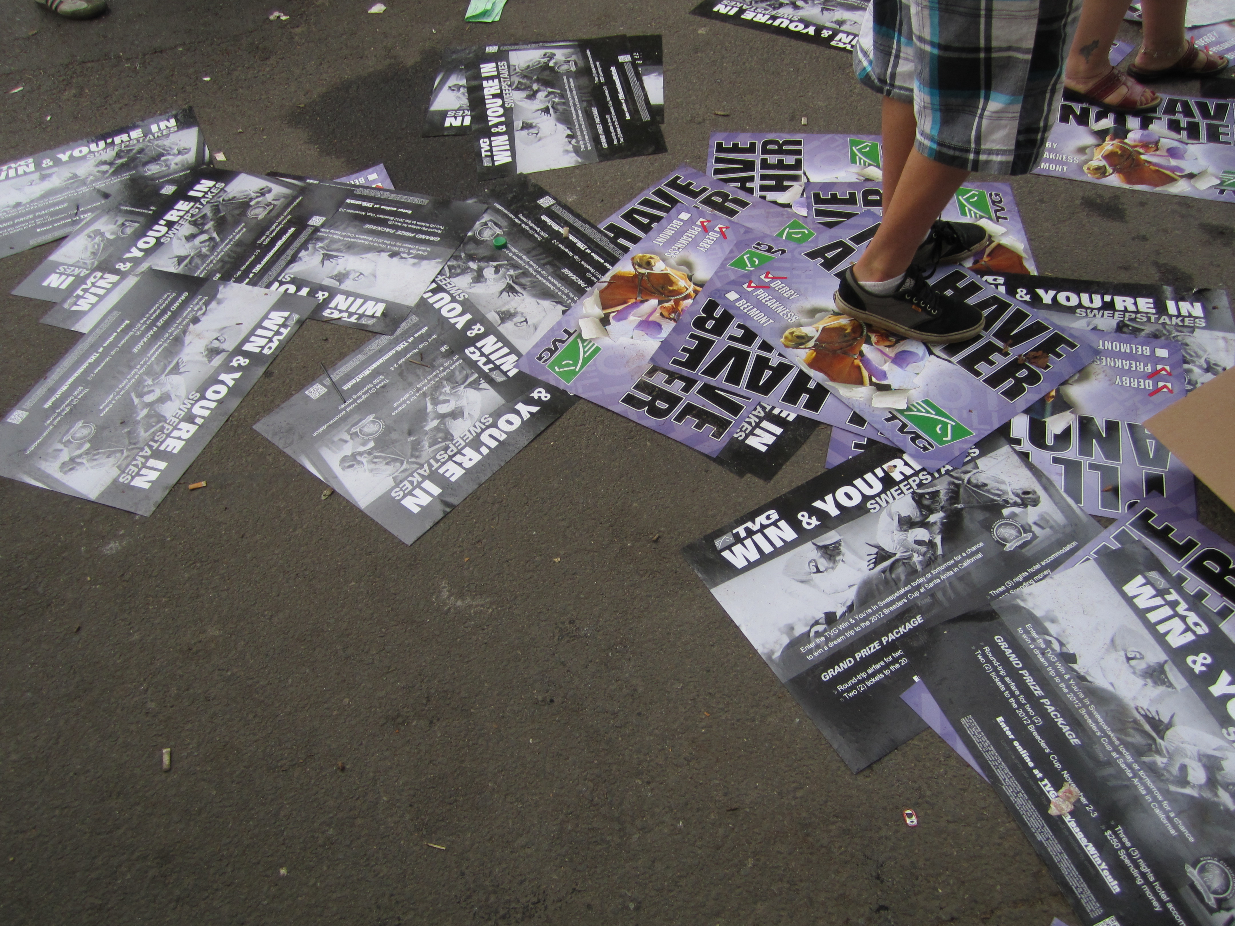 Belmont Park was a museum to what could have been the following day. There were I’ll Have Another buttons everywhere and I’ll Have Another posters stacked on lonely tables. Then you’d see the posters on the floor scattered around like big, sad confetti. The only thing sadder were the poor souls trying to unload all of the I’ll Have Another t-shirts. I made the best of a bad situation by betting winner Union Rags (redemption for my Derby pick) and nailing the exacta and trifecta with Paynter running second and Atigun third. If you’re going to be disappointed for the 10th time it helps to have a margarita in your hand and a back up plan for the windows.